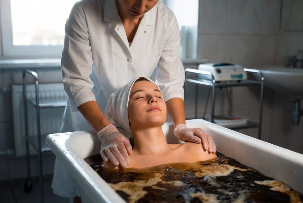 Kąpiel łącząca w sobie właściwości dwóch zabiegów – kąpieli solankowej i kąpieli borowinowej.